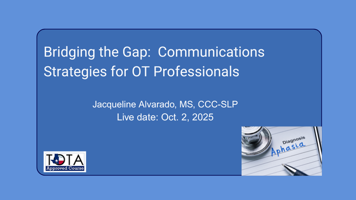 Most meetings are FREE to current TOTA members! Not a member? By becoming a member, you would be supporting your state association and enjoying cost savings while earning CE contact hours! If you are not a member, you must submit the requested payment.